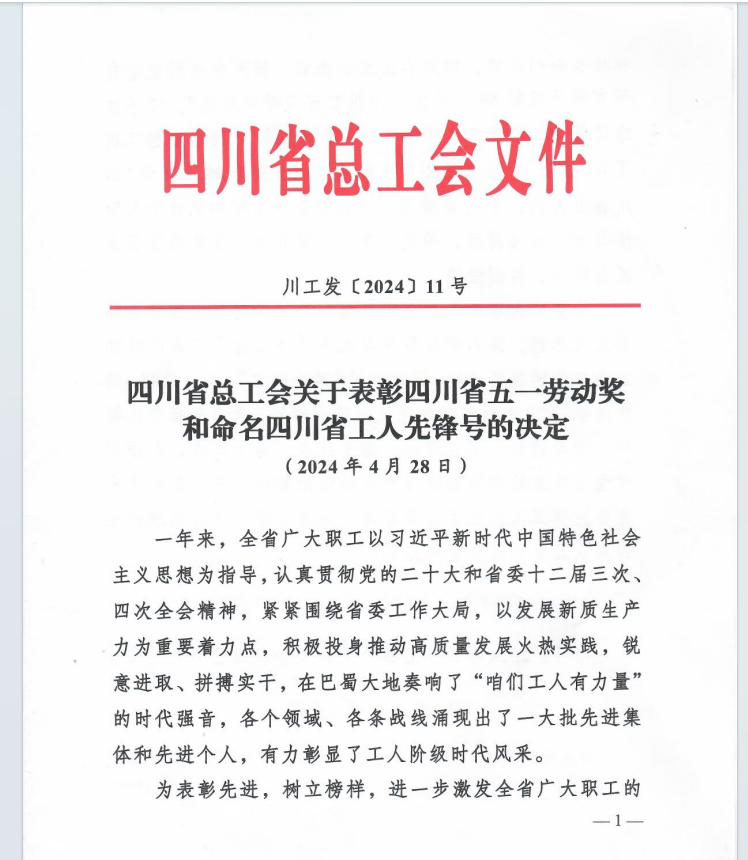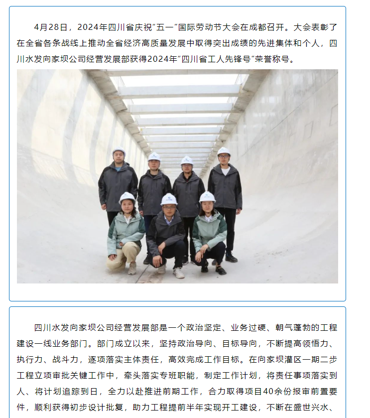 喜報!向家壩公司經營發展部獲得2024年“四川省工人先鋒號”榮譽稱號