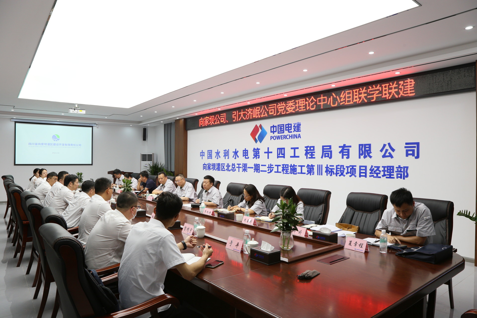 為深入貫徹落實習(xí)近平總書記關(guān)于黨紀(jì)學(xué)習(xí)教育的重要講話和重要指示精神,認(rèn)真學(xué)習(xí)《中國共產(chǎn)黨紀(jì)律處分條例》,5月23日,向家壩公司與引大濟岷公司黨委以“聯(lián)學(xué)聯(lián)建創(chuàng)新學(xué)習(xí)形式 以高質(zhì)量理論學(xué)習(xí)助力四川骨干水網(wǎng)建設(shè)”為主題開展黨委理論中心組聯(lián)學(xué)聯(lián)建活動。圍繞主題共同學(xué)習(xí)、橫向聯(lián)動,堅持思想引領(lǐng)、以學(xué)促干,將理論學(xué)習(xí)成效賦能施工一線,共同助力四川骨干水網(wǎng)建設(shè)大發(fā)展。