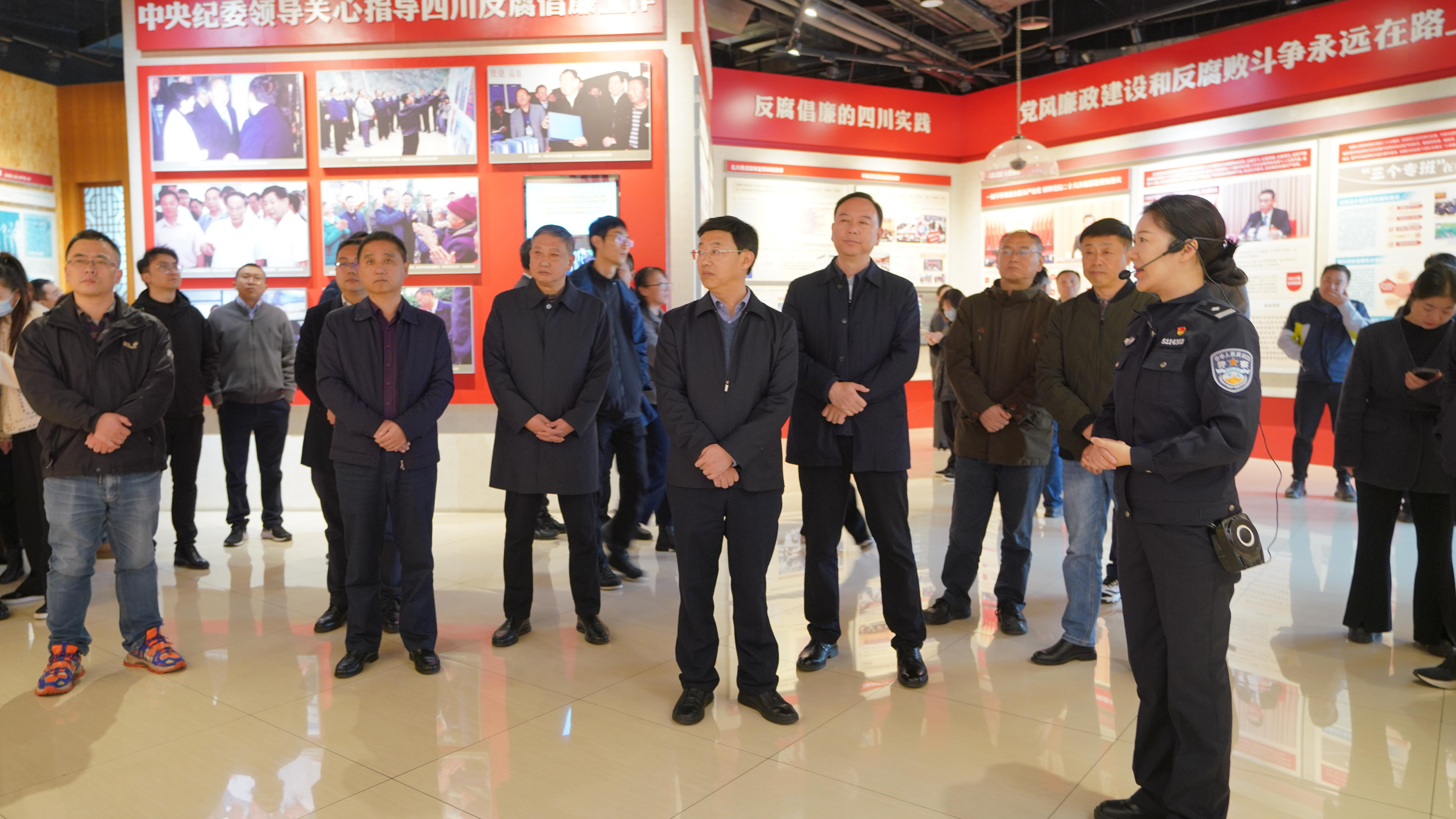 在法紀教育展廳,講解員引導大家觀看了廉政專題教育片,詳細了解了我們黨反腐倡廉的光輝歷程,聆聽了近年來四川省內發生的領導干部重大違紀違法典型案例,參觀了收繳的贓款贓物,這些鮮活的案例全面生動展示了新時代反腐倡廉的成果,真正讓紀律和規矩內化于心、外化于行。隨后,服刑人員現身說法,講述自己如何一步步沉淪,走上犯罪的道路,再次警醒大家要把紀律和規矩挺在前面,時刻繃緊紀律和規矩這根弦。